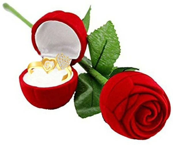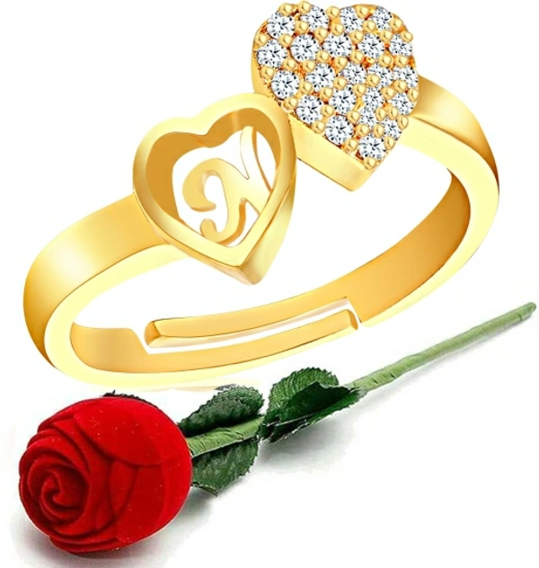 MEENAZ CZ AD Valentine gift Jewellery Stylish Heart Shape Golden Gold Plated Brass Copper Proposal i love you Name Alphabet Letter Initial N finger Rings for girls women girlfriend Men Boys Couples American diamond CZ AD Adjustable Gifts Set Lovers Design With Velvet Red Rose box set-RING ROSE BOX SET-ME173 Brass, Copper, Crystal, Stone, Alloy, Metal Cubic Zirconia, Zircon, Crystal, Diamond Gold Plated Ring Set